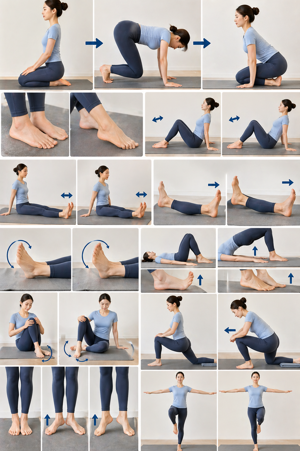 | 발 눕히고/세우고 앉기 | 무릎 꿇은 자세 | 관절 수용기 자극, 발목 유연성 | 과도한 무게 금지 |